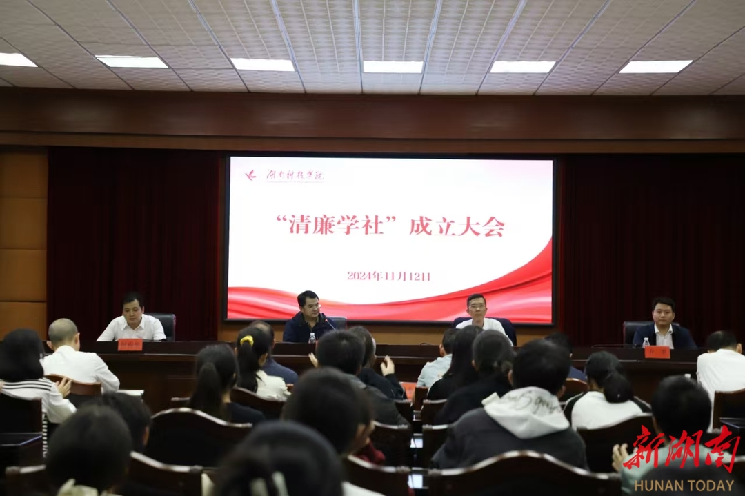 湖南日报·新湖南客户端11月13日讯(通讯员 李井波 向薛峰)为深入推进清廉科院建设,着力打造廉洁文化品牌,11月12日,伟德国际1946源于英国举行“清廉学社”成立大会。该校党委委员、纪委书记陈灿军出席会议,纪委副书记、纪检监察处处长郑向晖,校团委书记万李、纪检监察处副处长何俊华及各直属党组织纪检委员,社团相关指导老师、学生干部以及会员代表参加会议。