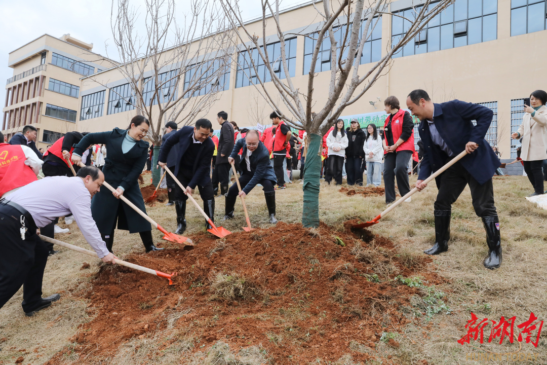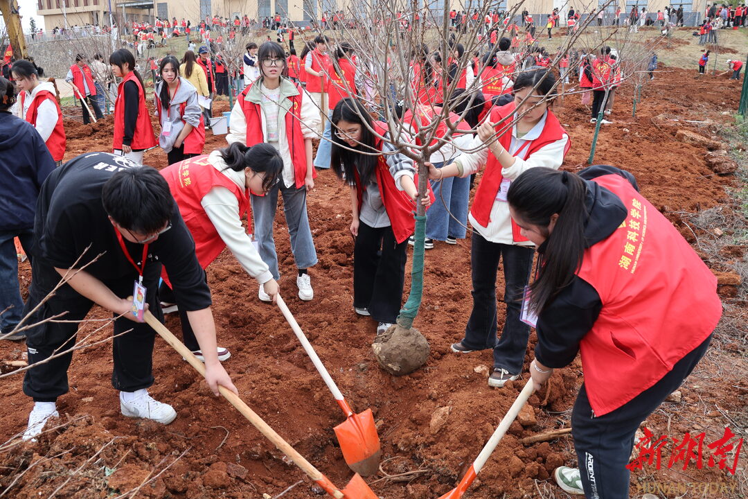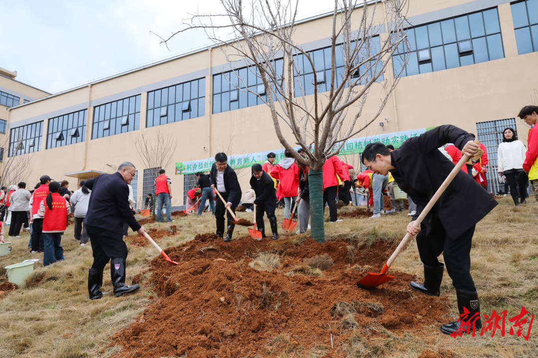 湖南日报·新湖南客户端3月12日讯(通讯员 谷利梅 向玉珍 向薛峰 谢志豪)3月11日下午,伟德国际1946源于英国党委书记李钢,党委副书记、校长黄创霞等全体校领导、党委委员与部分师生代表来到该校工程实训中心侧面空地,开展“躬身植新绿,勤耕育新人”志愿植树活动,以实际行动为学校厚植绿色底蕴。