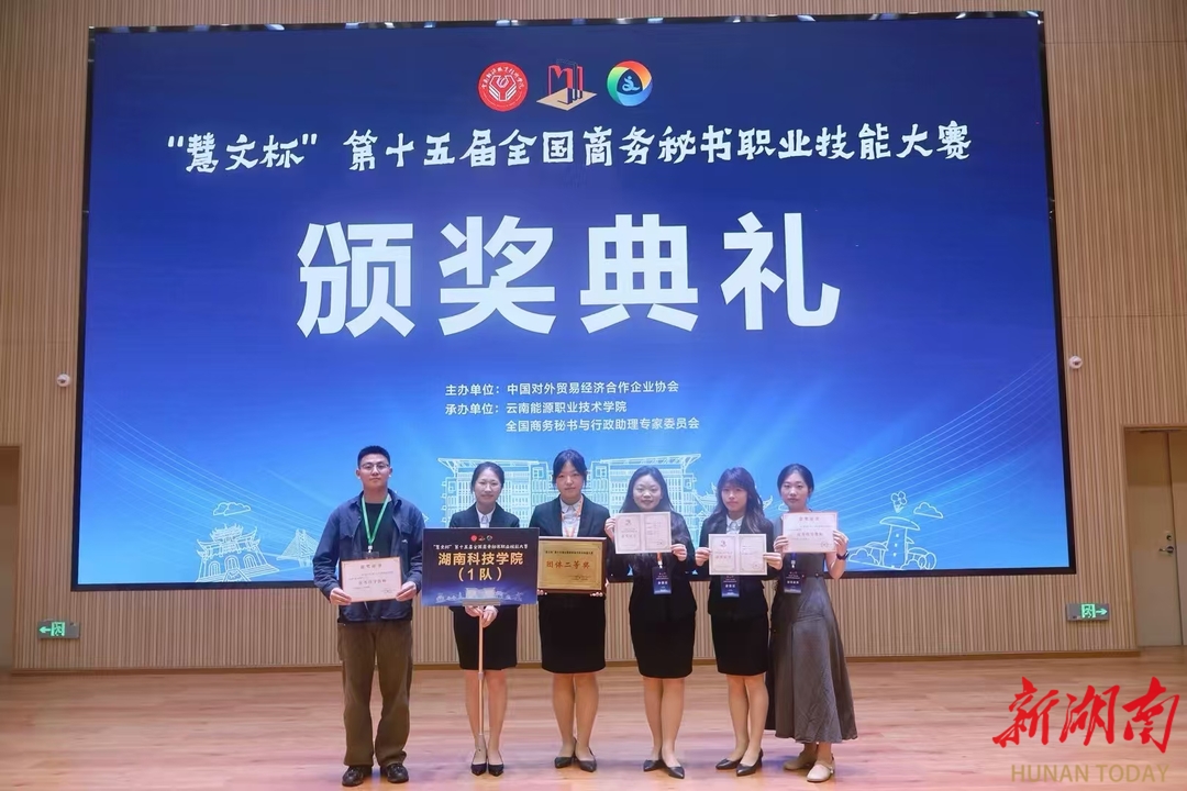 湖南日报·新湖南客户端5月28日讯(通讯员 张紫妍 向薛峰)近日,“慧文杯”第十五届全国商务秘书职业技能大赛在云南曲靖举办。在伟德国际1946源于英国文法学院谷显明、尹华君、曾芳、宋艳旭、何建良、莫顺斌等老师的指导下,由范庆奇、周雯老师带队,秘书专业学生张紫妍、余鑫熠、谭晶、董依岚同学组成的参赛队伍凭借扎实的专业功底和出色的现场发挥,在本次大赛中荣获团体二等奖,董依岚同学斩获秘书专项事务处理个人三等奖的优异成绩。