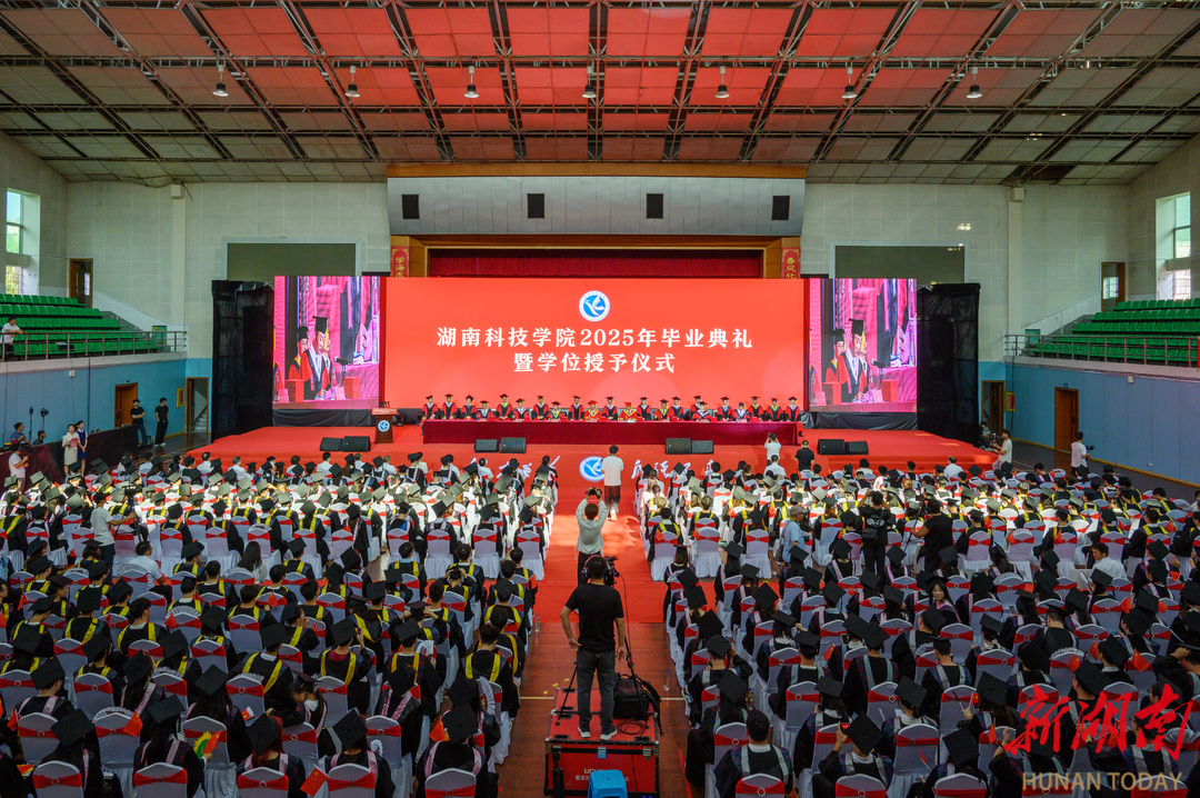毕业典礼前,全体师生以歌声共鸣青春脉搏,表达对毕业生们最美好的祝福,紧随其后的《遇见・湘科院》原创毕业短片,用光影勾勒了学子们的成长轨迹,既串联起大学四年的珍贵记忆,更表达出他们对未来人生的憧憬与向往。