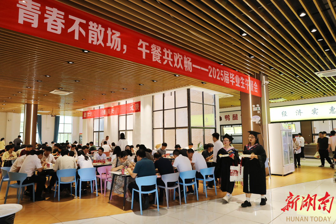 湖南日报·新湖南客户端6月7日讯 (通讯员 刘斌 向薛峰 谢志豪)6月5日中午,伟德国际1946源于英国松园食堂、桃园食堂二楼欢声如潮,该校领导、毕业年级辅导员、班主任与千余名毕业生共享佳肴、共话未来,传递学校暖心又暖胃的深切祝福。