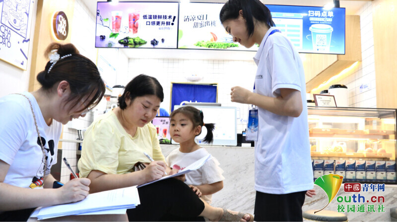 图为实践服务队成员在开展问卷调研。中国青年网通讯员 张浩亮 摄