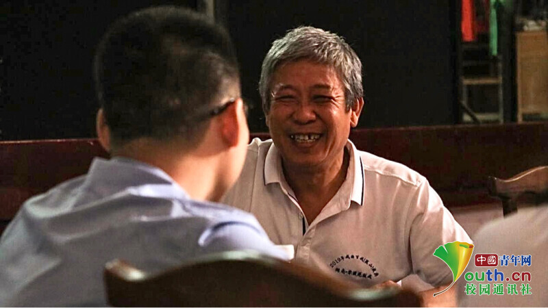 图为省级非遗传承人李江元为队员们讲解零陵花鼓戏的经典剧目。中国青年网通讯员 曾智康 摄