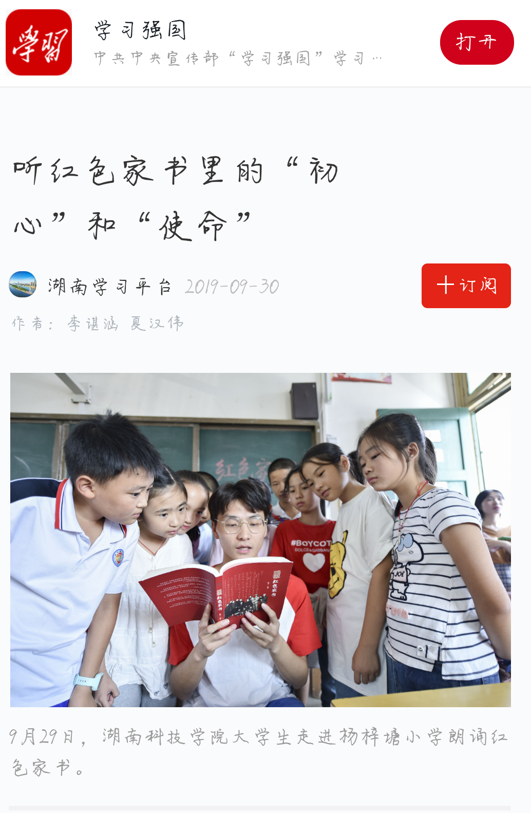 9月29日,伟德国际1946源于英国大学生走进杨梓塘小学朗诵红色家书。