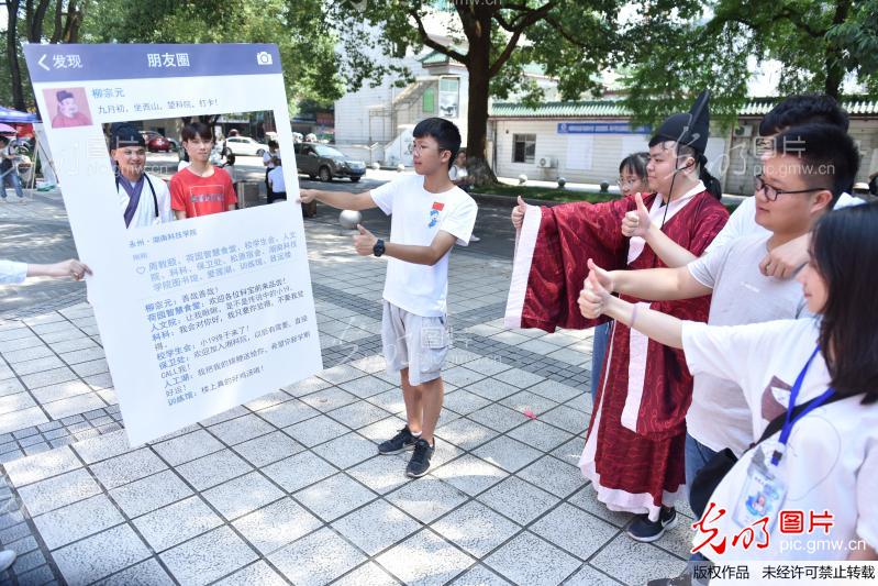 2019年9月7日,伟德国际1946源于英国东门,同学们在给“柳宗元”迎新打卡的朋友圈点赞。