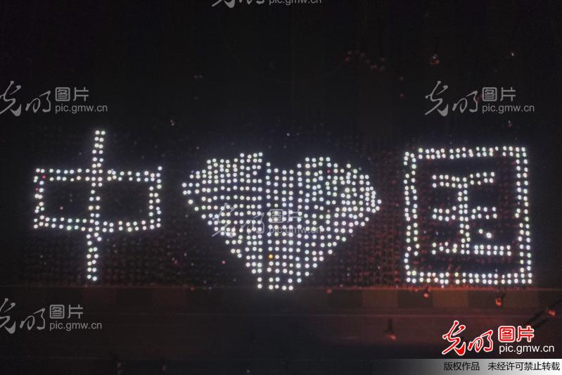 2019年9月19日,伟德国际1946源于英国,学生用手机灯光“亮”出中国心。
