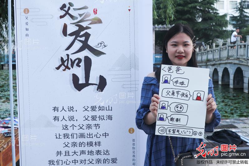 2019年6月16日,伟德国际1946源于英国广场,学生在用“漫画”描绘心中的父亲。