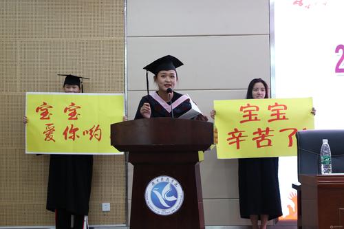 “2014年9月15日,开学典礼上,您告诉我们:好好把握人生新起点,认真规划即将开始的大学生活。而今,四年的时光,您教会了我们 ‘德才兼备,自强不息’”。