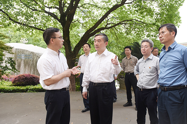 蒋昌忠参观了实验实训中心、图书馆、国学院、旅游与文化产业学院等地,听取了陈弘的工作汇报,详细了解了校企合作、产教融合方面的有关情况。