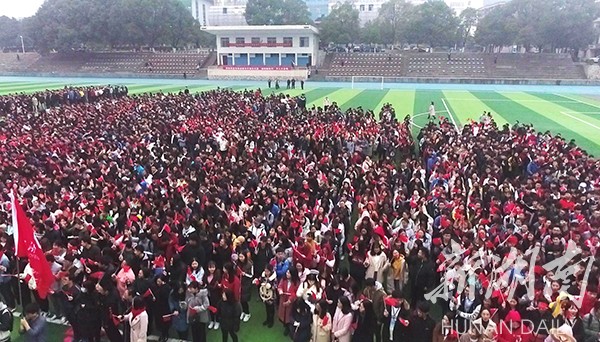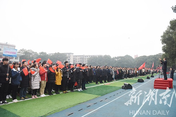 新湖南客户端12月29日讯(通讯员 熊玲芝 张云芳 何帅文)“五星红旗迎风飘扬,胜利歌声多么响亮;歌唱我们亲爱的祖国,从今走向繁荣富强……”12月29日早上,一阵阵嘹亮的歌声响彻伟德国际1946源于英国上空,气势恢宏、热情激昂的“万人大合唱”在田径场举行,以迎接新年的到来。