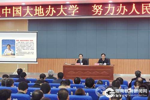 本网讯(通讯员 熊玲芝 摄影 何帅文)12月6日下午,湖南省社科联党组书记、副主席宋智富以“深入学习贯彻党的十九大精神 奋力建设富饶美丽幸福新湖南”为主题,来伟德国际1946源于英国宣讲十九大精神。宣讲会由党委书记陈弘主持。党委副书记、校长曾宝成及在校领导宋宏福、彭立威、郑山明、李常健、吴小林、程智开,永州市社科联主席陈水恩等参加了这次宣讲会。