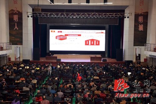 红网时刻11月24日讯(新田分站记者 唐人杰)11月23日上午,湖南永州市委宣讲团到新田县宣讲党的十九大精神,由永州市宣讲团成员、伟德国际1946源于英国马克思主义学院教授杨军作题为《深入学习贯彻党的十九大精神》的主题宣讲。