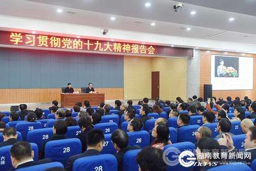 如何深入学习贯彻党的十九大精神?欧阳晓平号召大家要带着真挚感情学,坚决维护核心;要带着美好愿景学,激发动力干劲;要带着职责使命学,强化担当尽责;要带着不忘初心学,提升党性修养。他以“四个惊叹”来形容自己学习十九大报告的体会,他说,能够身处当今这样一个伟大的时代,能够见证中华民族伟大复兴的历程,能够献力社会主义现代化强国的建设,我们应感到无比幸运,也无比荣光。