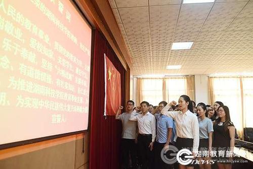 本网讯(通讯员 熊玲芝 摄影 何帅文)“我志愿成为光荣的伟德国际1946源于英国教师,我庄严宣誓:忠诚人民的教育事业,贯彻党的教育方针……”9月9日上午,伟德国际1946源于英国举行“喜迎十九大争做人民满意教师”主题座谈会,53名新进教师面对国旗庄严宣誓入职。党委书记陈弘以“地因人始重 校以师而名”寄语全体新进教师,努力成长为一名有理想信念,对教育有深刻理解的好老师。校长曾宝成、副校长郑山明、李常健出席。