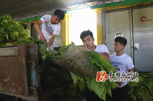 志愿服务团帮忙收烟。