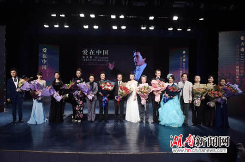 湖南新闻网永州4月24日电(甘玫)“蓝天白云知道爱在中国,五千年的文明养育了爱的山河……”一曲唱罢,掌声四起。4月24日,《爱在中国》张天甫2017全国高校巡演在伟德国际1946源于英国拉开帷幕。中国著名男高音歌唱家张天甫携手数位中外音乐家,为伟德国际1946源于英国的莘莘学子们带来了一场视听盛宴。