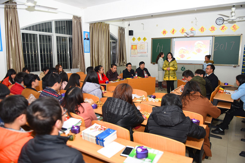 班会上,大家围坐在一起,分享着自己春节的趣事与学习近况。陈弘书记坐在同学们中间,边听边微笑地点头致意,他不时高兴地鼓掌赞赏同学们的发言。