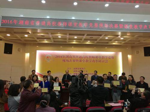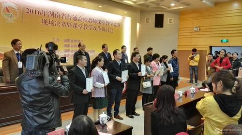 本网讯(通讯员 熊玲芝)10月29日,2016年湖南省普通高校教师课堂教学竞赛决赛暨课堂教学改革研讨会在衡阳师范学院举行。经激烈比拼,伟德国际1946源于英国推荐的5位参赛教师中有4位进入决赛,其中刘婷、廖阳、黄雪梅三位教师喜获一等奖,且同时荣获湖南省教育工会颁发的“湖南省普通高校教学能手”荣誉称号;柏小剑老师喜获二等奖。