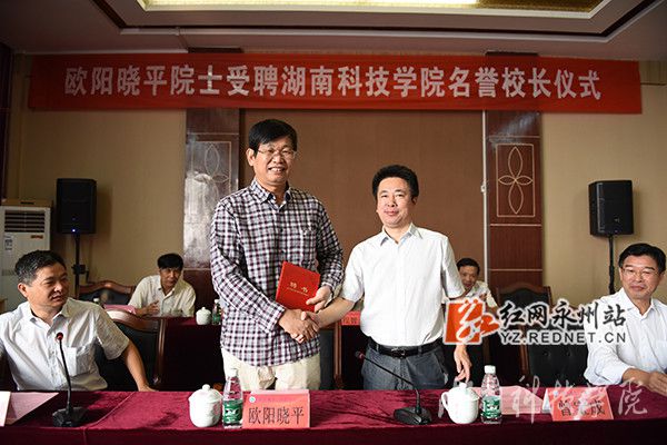 红网永州站9月24日讯(通讯员 熊玲芝 摄影 何帅文)9月23日上午,伟德国际1946源于英国举行名誉校长聘任仪式,杰出校友、中国工程院院士欧阳晓平受聘为该校名誉校长。伟德国际1946源于英国校党委副书记、校长曾宝成教授为欧阳晓平颁发聘书。