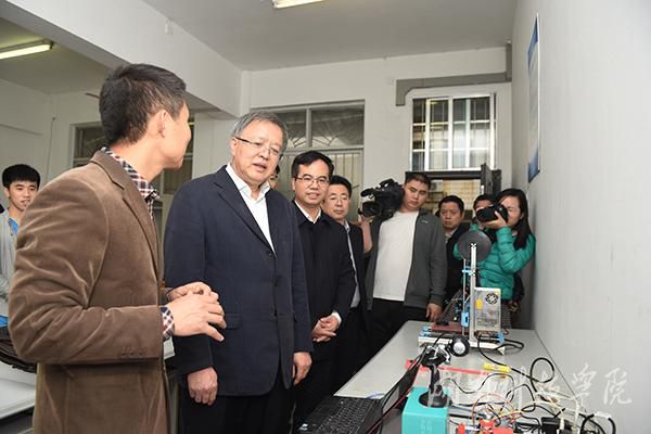欧阳斌一行来到电子与信息工程学院创新创业中心,实地了解了由在校大学生创办的永州新朝阳科技有限公司孵化基地。陈弘就伟德官网创新性实验项目成果和学生创新创业产品进行了重点介绍。欧阳斌边听边看,对学校推进科技成果产业化取得的科技创新教育成果给予充分肯定,鼓励广大师生走向社会,积极投身创新创业,为“大众创业、万众创新”做出更大贡献。