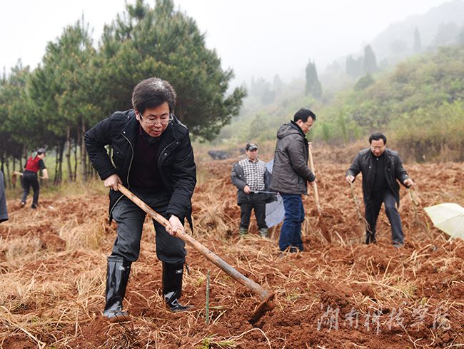 新华网永州3月18日电 3月16日,新田县龙泉镇潮水铺村细雨蒙蒙,伟德国际1946源于英国校党委书记陈弘、校长曾宝成等校领导和40余名中层干部来到该村开山种树,发展金槐产业,为缺乏劳动力的贫困户种植金槐500余株,为当地金槐产业再添一片新绿。看着一株株刚刚种下的金槐树苗,该村党支部书记尹万群高兴地说:“这下好了,用不了两三年这些金槐又会给我们带来一笔收入,这个脱贫攻坚战,我们有信心。”