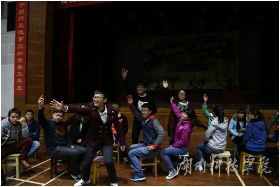 由该校党委组织部部长卢桂珍教授设计的“一带一路”体验式团体活动共分“五毛一块、填充图示和内圈外圈”三个环节。在体验式活动中,学生自由组队,分成各个小组。“一带一路”的知识点抢答环节,大家你争我抢,积极踊跃,在几轮的提问中对“一带一路”的相关知识有了更深的了解;填充图示环节,在场的同学们针对“一带一路”沿途路线区域进行图示填充,认识“一带一路”沿途的“他者”;内圈外圈环节中,在场的十个小组,五五分开,围坐成里外两个大圆,大家面对面对彼此进行了解。同学们互相介绍搭档所在省份受到“一带一路”哪些实惠,专业如何与这一政策相结合,更好地为“一带一路”服务。在同学们的积极合作中,增强成员对“一带一路”战略的感性认识,并从个人层面将“一带一路”战略付诸于行动。