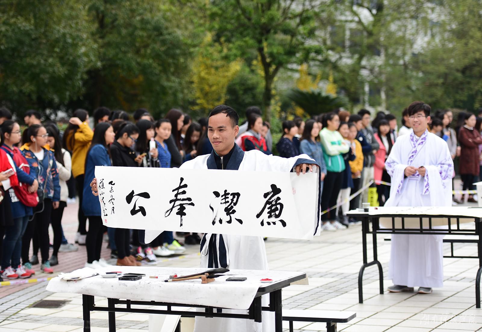 本网讯 挥毫遒劲书正气, 翰墨飘香展清廉。11月22日,伟德国际1946源于英国近千名师生陶醉在悠扬婉转的古筝声中,欣赏了一场学子着汉服、民国服装现场挥毫泼墨的弘扬传统文化的视觉盛宴。