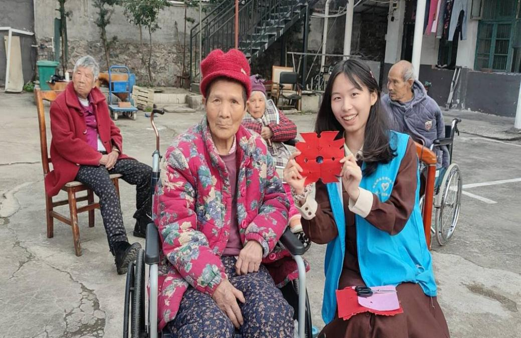 本网讯(通讯员 吴晴芸 李喜群)爱心饺子宴,剪纸送祝福。11月25日,外国语学院青年志愿服务团组织志愿者来到永州康泰养老院,为老人们精心准备了一场爱心满满的饺子宴,并用红纸裁剪出一张张精美窗花给老人送去吉祥祝福。