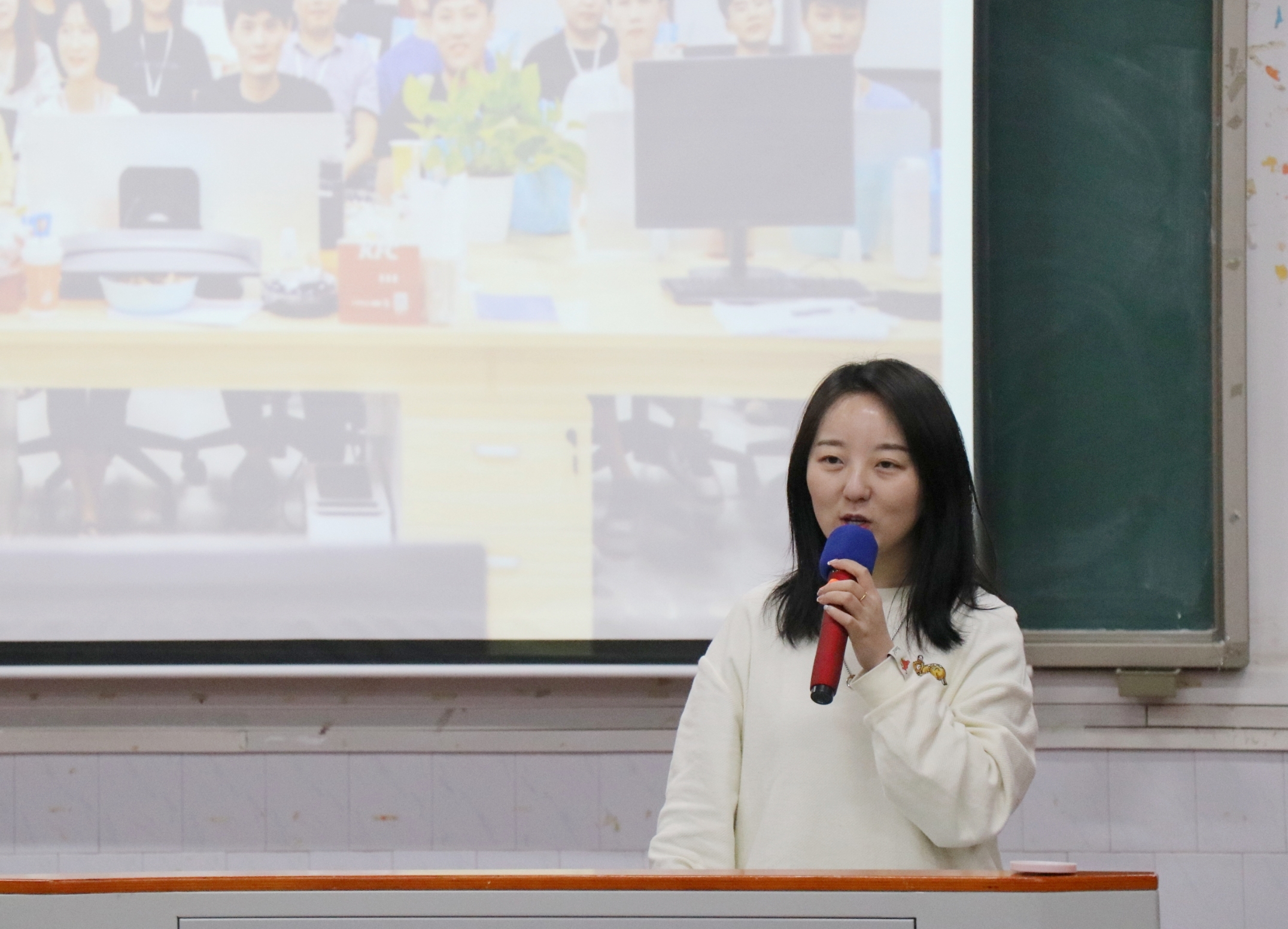 首先,唐晨向大家汇报了2020年商务英语专业第一批实习学生的实习情况,她提到了专业素养、学习能力及审美能力在实习工作中的重要性。同时也对第二批实习生提出了自己的希望与要求。