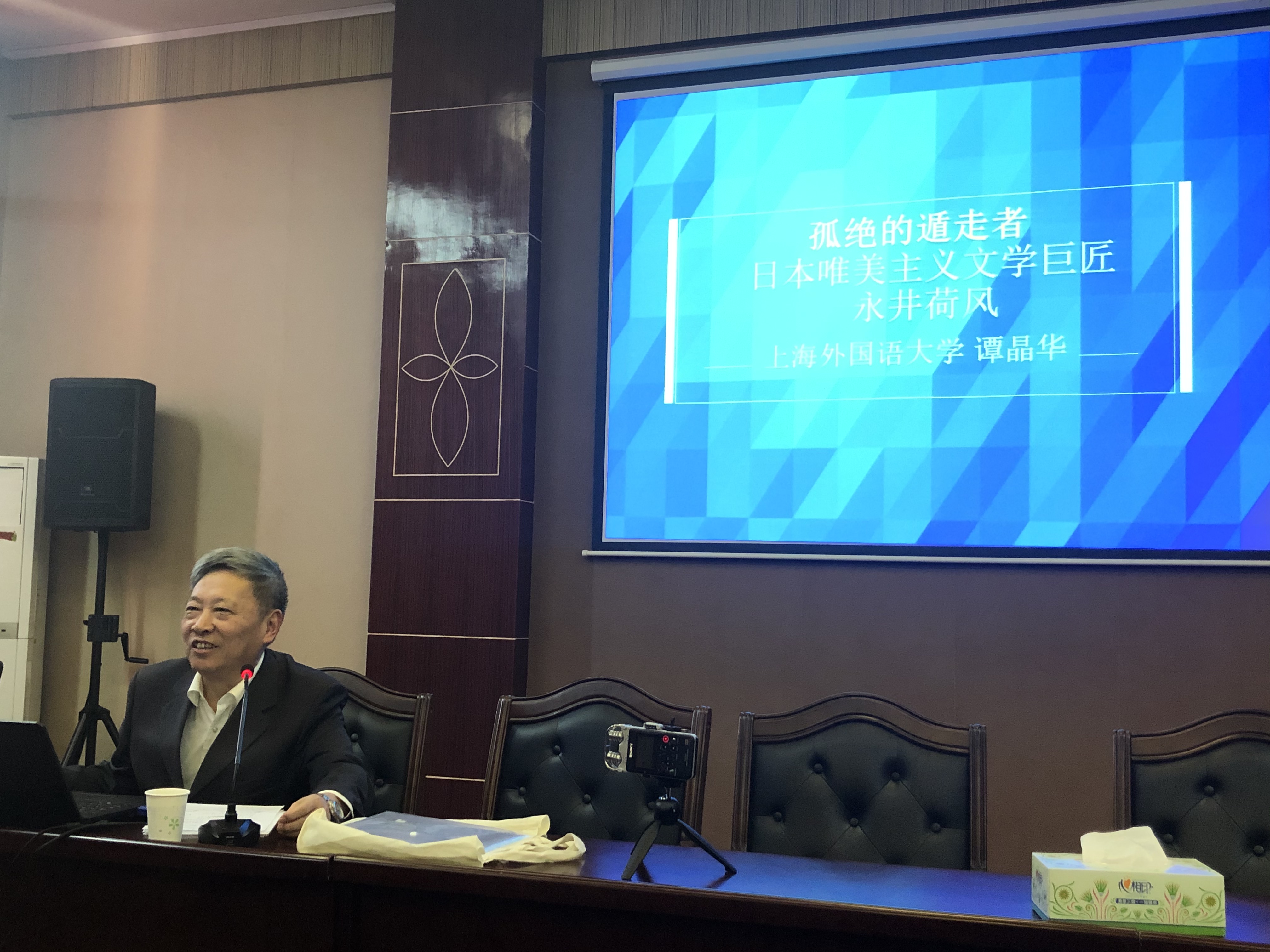本网讯(通讯员杨霞)2019年11 月22日下午,应外国语学院邀请,上海外国语大学谭晶华教授莅临伟德官网在行政楼八楼三会议室举办了题为“日本唯美派文学的巨匠永井荷风”的学术讲座。外国语学院院长欧华恩教授主持讲座,教务处副处长张剑教授、日语系教师代表、部分日语专业生和二外学习者参加了讲座。