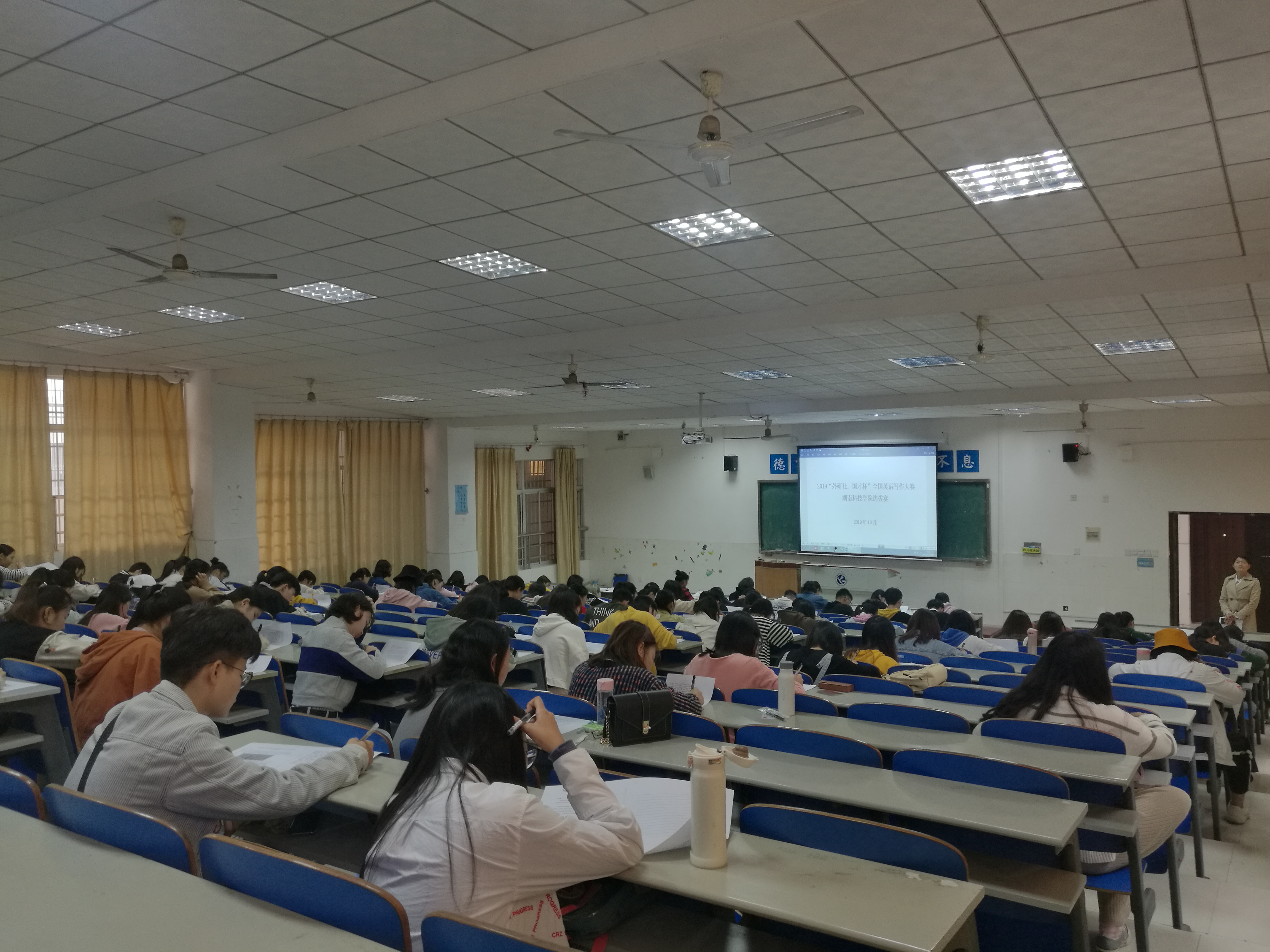 本网讯(通讯员 黄昊文)为了迎接“Uchallenge 大学生英语挑战赛”,全面提升学生的英语综合应用能力,进一步推动伟德官网英语教学,外国语学院于10月19日上午9:00-11:00以及下午2:00-4:00举行了写作、阅读大赛选拔赛,报名参赛人数355人,实际参赛301人。评选出特等奖4人,一等奖16人,二等奖31人,三等奖45人。