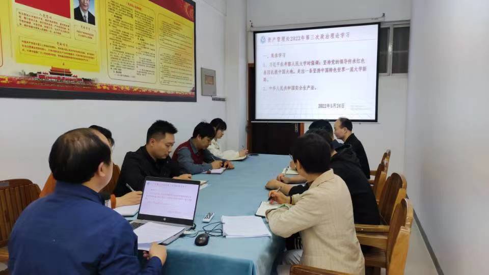20225月24日下午,根据学校五月份政治理论学习计划,资产管理处开展2022年第三次政治理论学习第二次活动组织部门全体成员集中学习了习近平总书记在人民大学考察调研的重要指示精神,并要求部门全体成员自学了《中华人民共和国安全生产法相关内容。